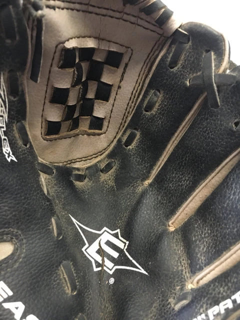 Easton Z-Flex Size 9.5″ RHT Used Baseball Glove. Lacing and webbing in good condition. Glove has a tear in palm.
