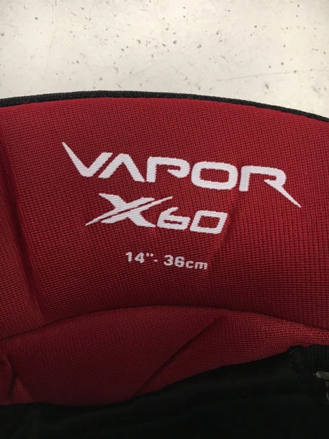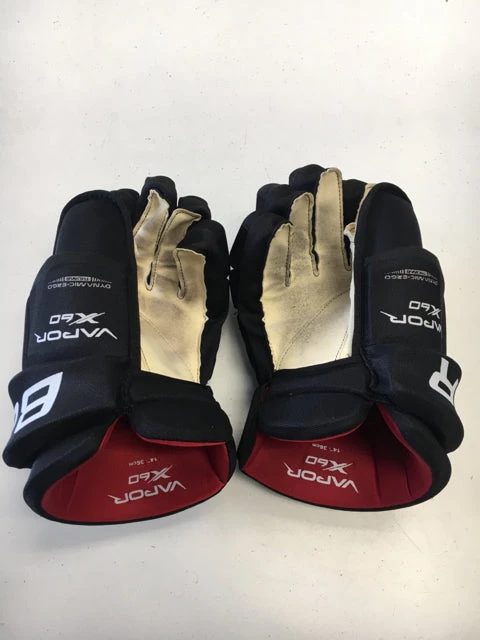 Bauer Vapor X60 Black Size 14″ Used Hockey Gloves. Some ware on palms of gloves, overall in good condition.
