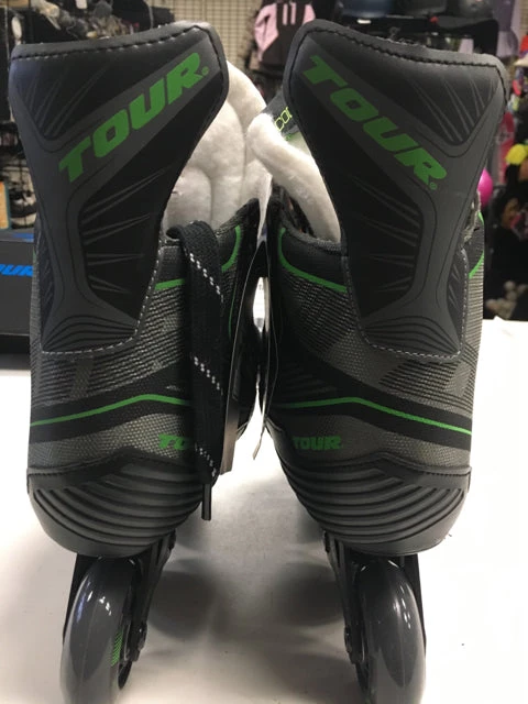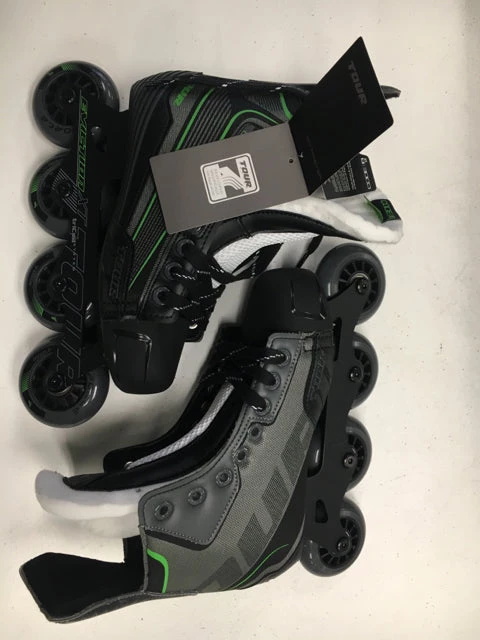 Tour Code 9 Slightly Used Sr Size 5 Roller Hockey Skates. Skates have minimal ware, in nearly pristine condition. Original box included.