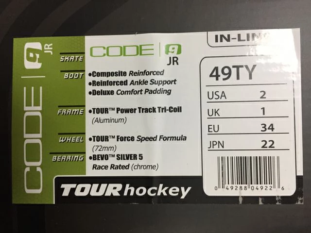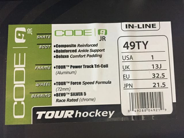 New Tour Code 9 Junior Roller Hockey Skates