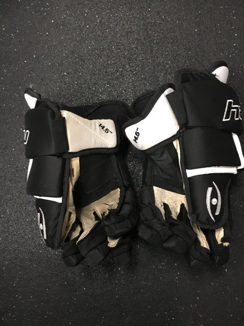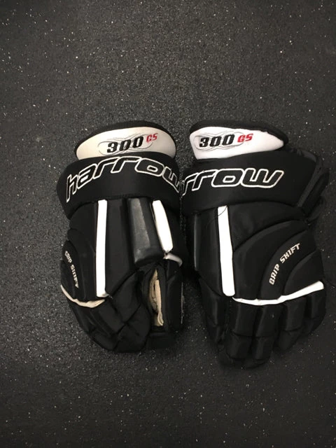 Used Harrow 300 GS Black/White Sr Size 14.5 Hockey Gloves. Some ware on gloves. Padding and palms in good condition.
